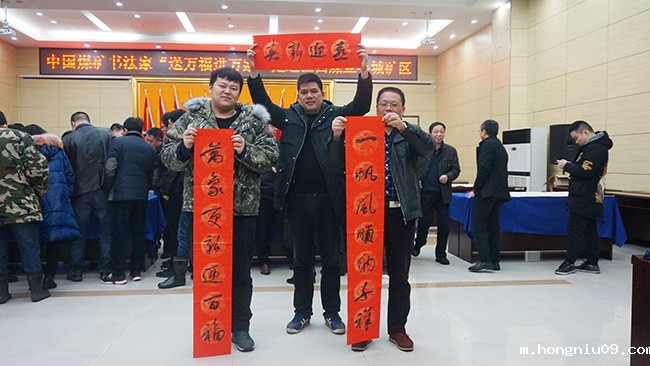 会展中心外冬雨淅沥,却挡不住活动现场热烈祥和的节日气氛。一张张大红的“福”字,一幅幅火红的春联送到矿工的手中,带来了广大书画艺术家对矿工的情意,赢得了矿区人民群众对煤矿文艺工作的认可。很多在现场的煤矿职工表示:“这么多书画艺术家能同时来到丰城矿区一线为我们写春联,我们深受感动和鼓舞,感谢各级领导和艺术家对煤矿工人的关心和关爱。”活动共书写春联520幅,送“福”字200多个。